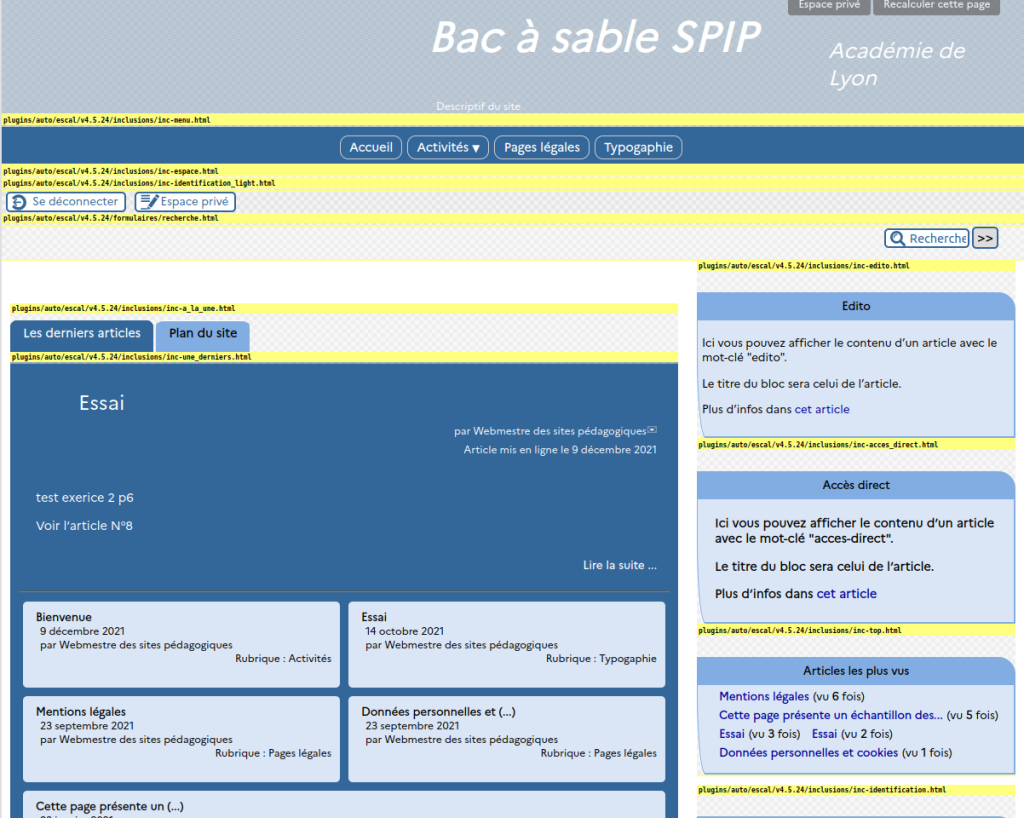 On peut voir ci-dessous toutes les lignes surlignées en jaune qui indique pour chaque élément le chemin du ou des fichiers HTML concernés.